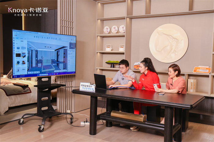 直播現(xiàn)場,陳曉君還通過電話連線消費(fèi)者互動(dòng),在了解其設(shè)計(jì)需求之后,卡諾亞大師級(jí)專業(yè)設(shè)計(jì)服務(wù)團(tuán)隊(duì)在線幫消費(fèi)者快速出效果圖,打造專屬冠軍設(shè)計(jì)整家方案。所見即所得,未來的家提前看見,哪里不滿意就換哪里,未來生活搶先體驗(yàn),世界冠軍的陳曉君,被如此貼心的星級(jí)服務(wù)打動(dòng)了。